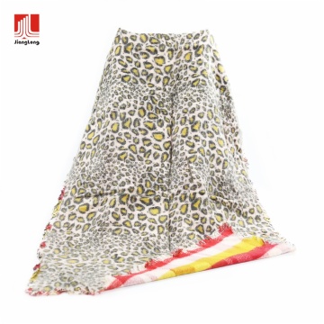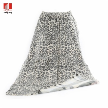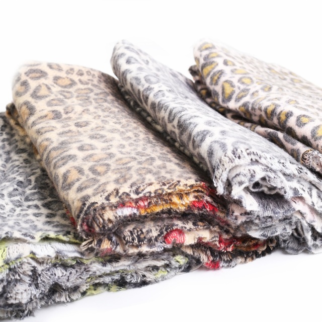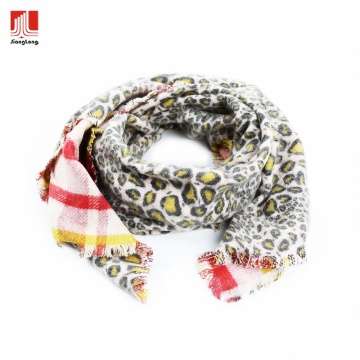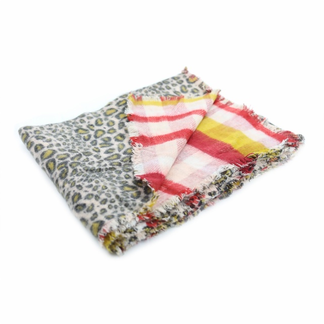 Description: 100%acrylic plaid to leopard printing reversible woven wrap