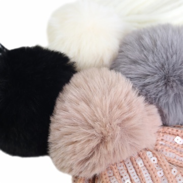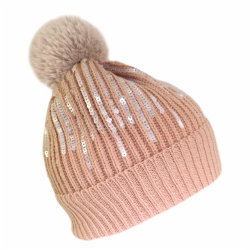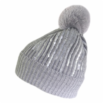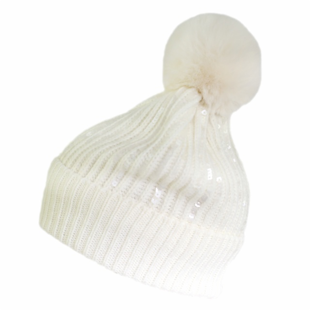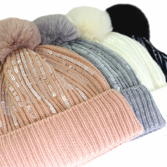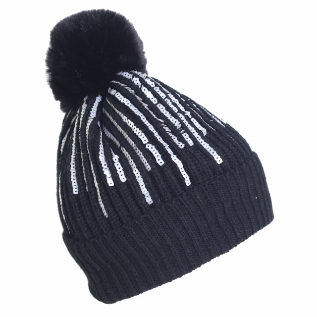 DESCRIBTION:SEQUIN SHINE BEANIE WITH FAUX FUR POM