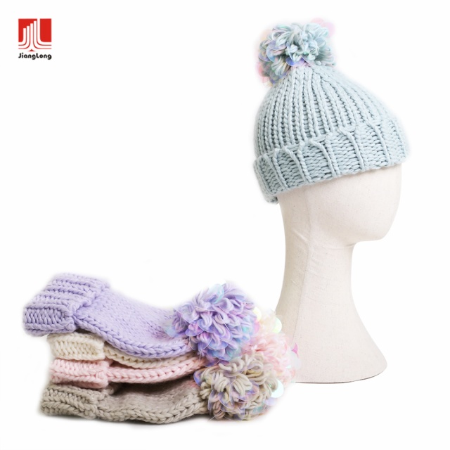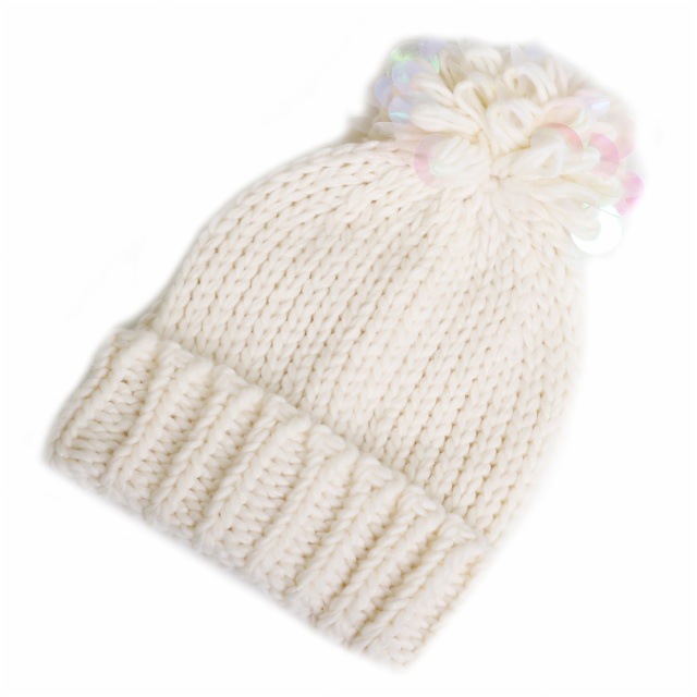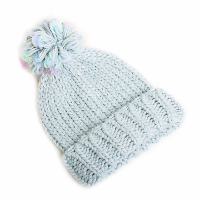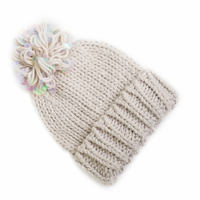 DESCRIBTION:CHUNKY BEANIE SEQUIN LOOP YARN POM