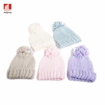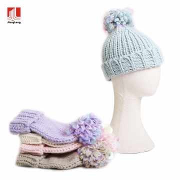 Color Block Knit Yarn pom beanie