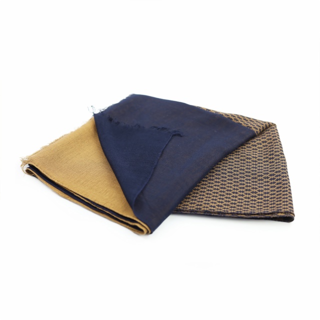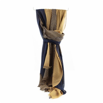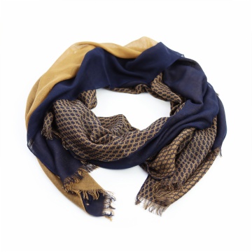 poly/acrylic/sequin/ AB yarn bi-color twill with stripes on two short ends woven square wrap