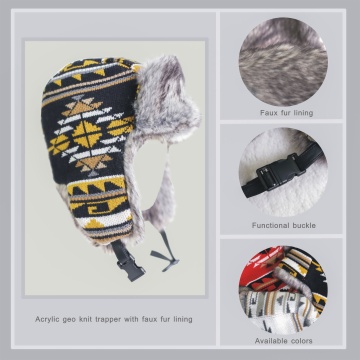 Item Code: Features:Geo knit trapper with faux fur lining