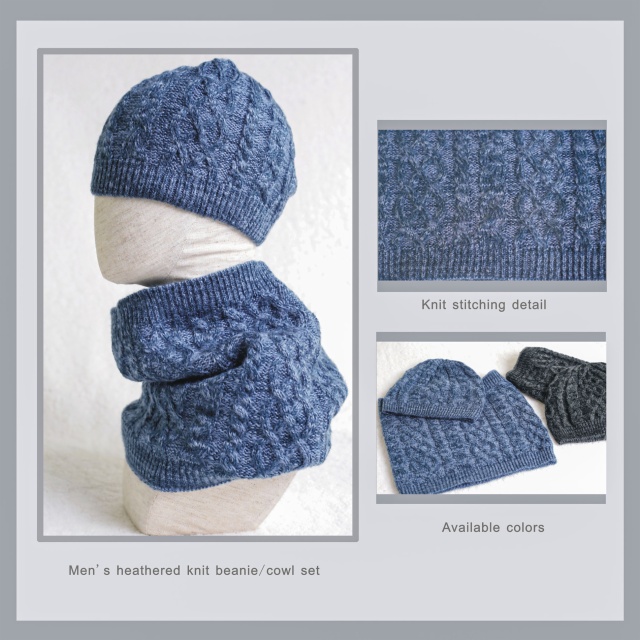 Item Code: Features:Men's heathered knit beanie/cowl set