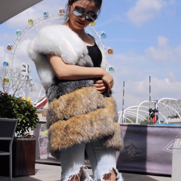 Faux fur color block vest