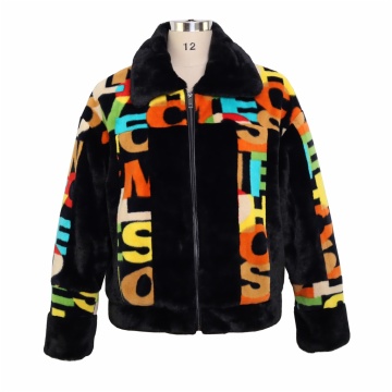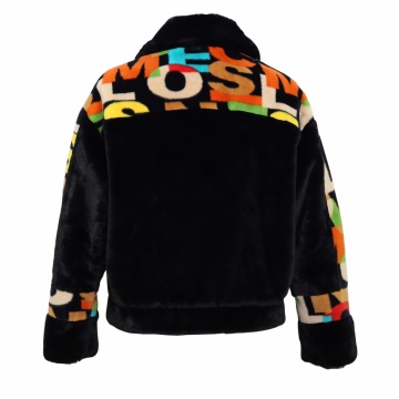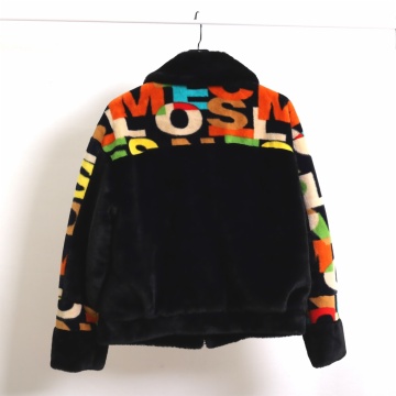 Faux fur letter print coat