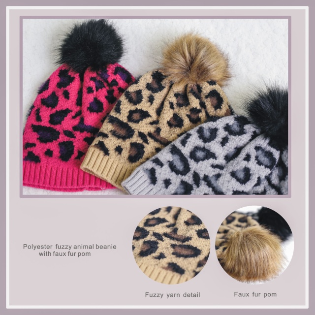 Item Code: Features:Poly fuzzy animal beanie with faux fur pom