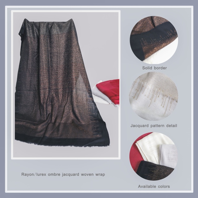 Description: rayon/metallic ombre shine woven wrap