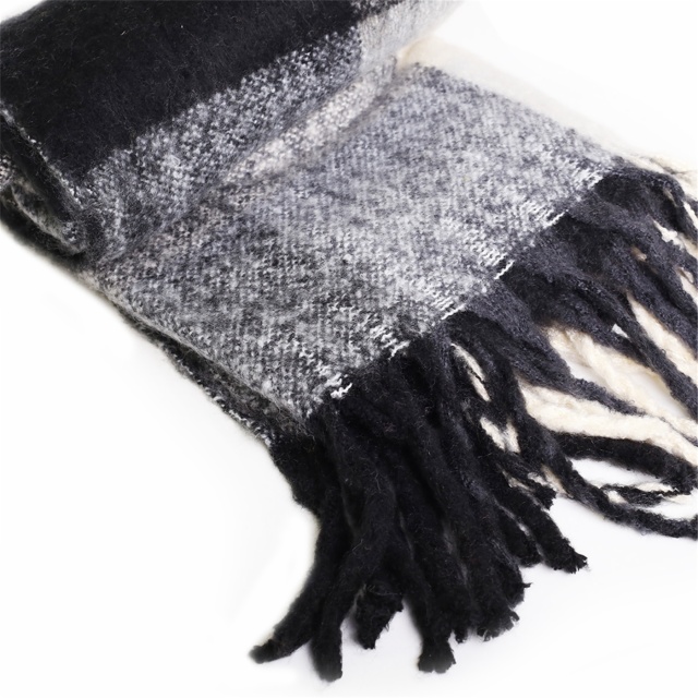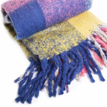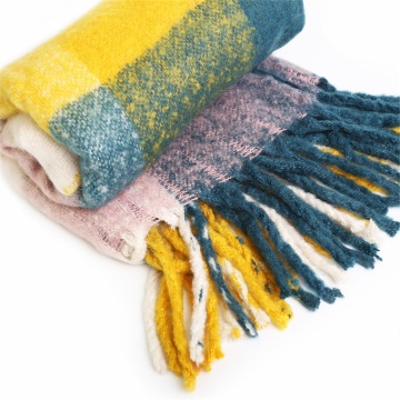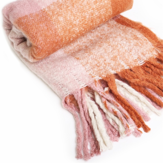 poly/acrylic boucle yarn brushed plaid blanket woven ruana