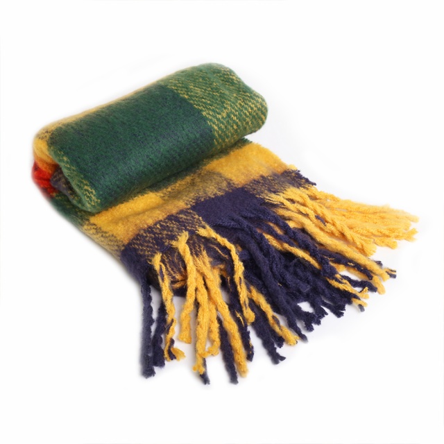 poly/acrylic boucle yarn brushed plaid blanket woven ruana