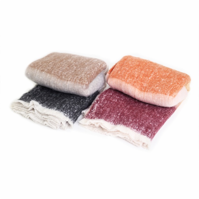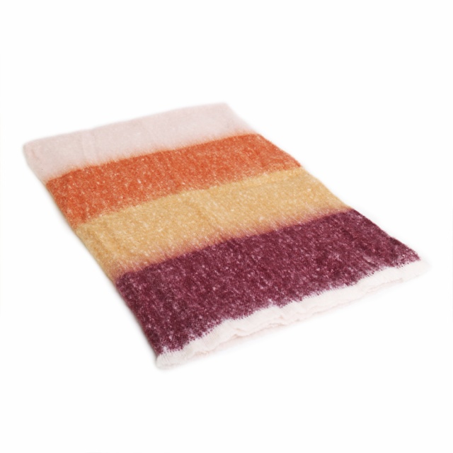poly/acrylic/sequin/ AB yarn bi-color twill with stripes on two short ends woven square wrap
