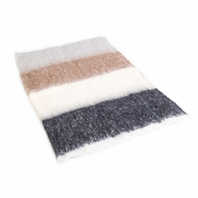 3.7N/1poly boucle space dye poms stripe woven wrap