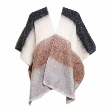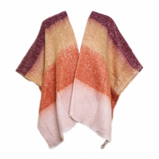 Description:poly boucle color block side tacking heavy brushed woven ruana