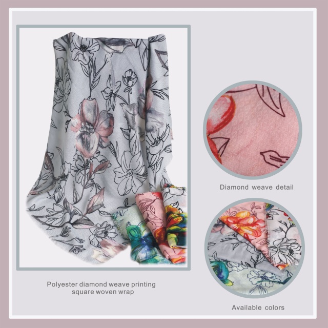 Item Code: Features:100%poly diamond linear floral printing square woven wrap