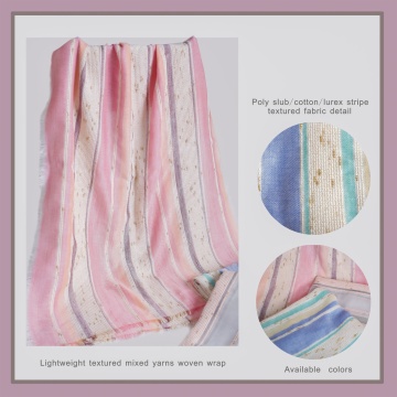 poly/cotton lurex thick yarn stripe woven wrap