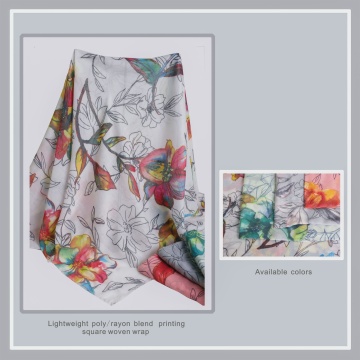 Description: 65%poly35%rayon linear floral printing square woven wrap