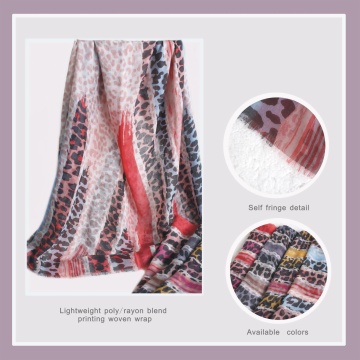 Description: 80%poly20%rayon stripe leopard printing woven wrap