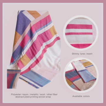 Item Code: Features:76%polyester 10%rayon 8%metallic 2%wool 4%other fiber abstract plaid printing woven wrap