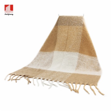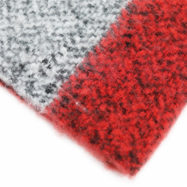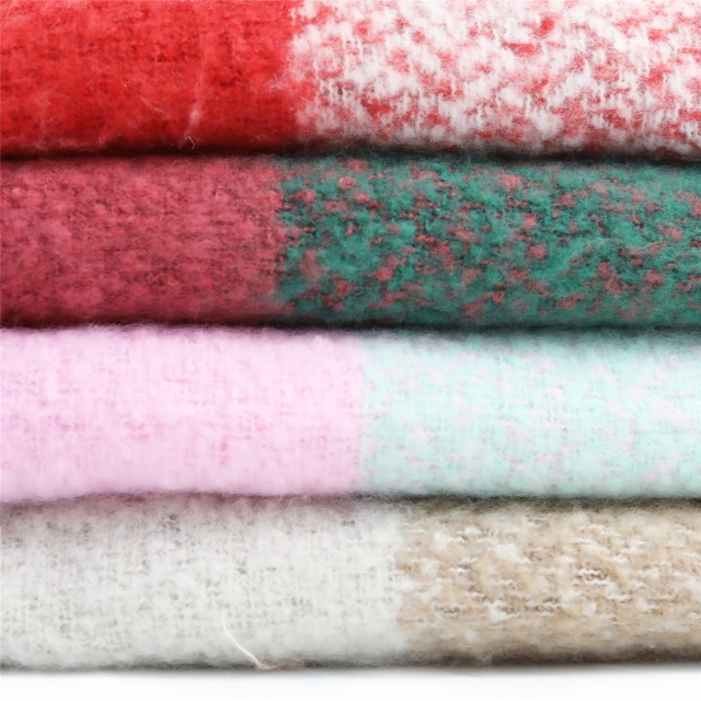 50% recycle poly 50% poly boucle oversized plaid brushed woven wrap