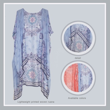 Description: 30s/1 rayon paisley printing high-low woven ruana