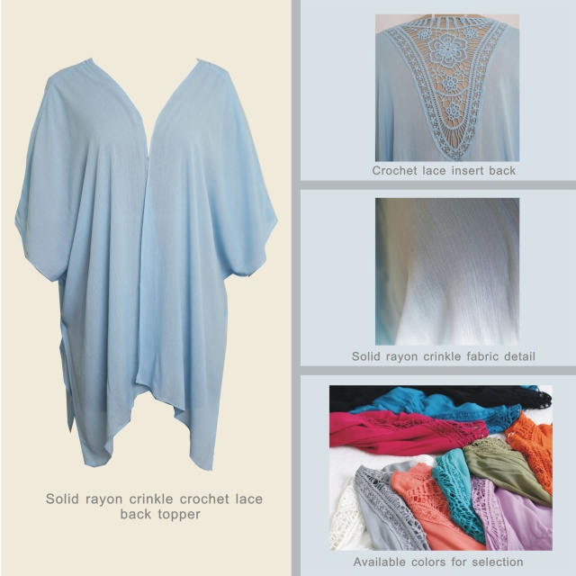Item Code: Features:100%rayon crinkle lace insert back solid woven topper