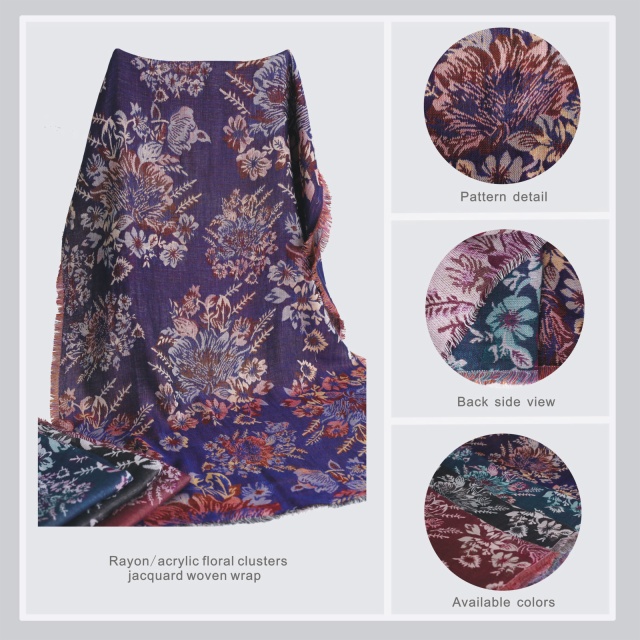 57%rayon43%acrylic floral clusters jacquard woven wrap