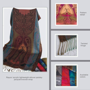 57%rayon 43%acrylic lightweight allover paisley jacquard woven wrap