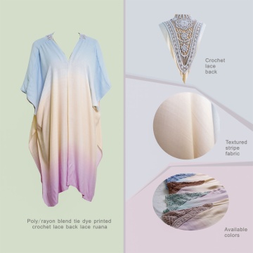 Description: 60%rayon 40%poly ombre colorblock printing woven topper with lace insert