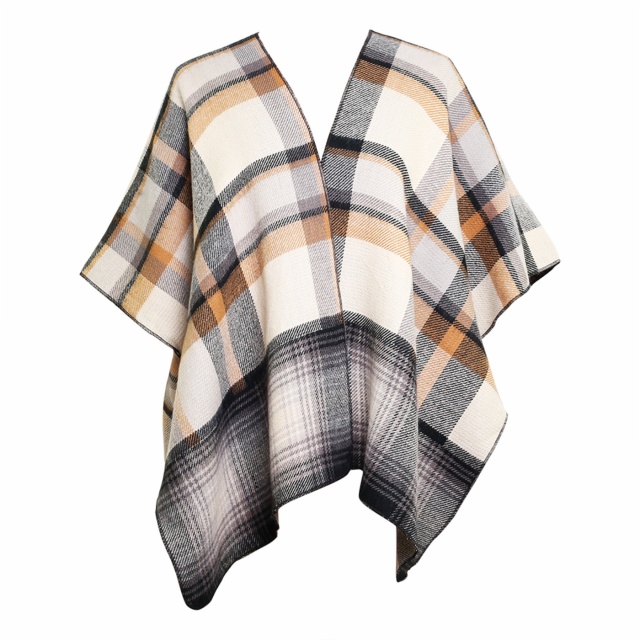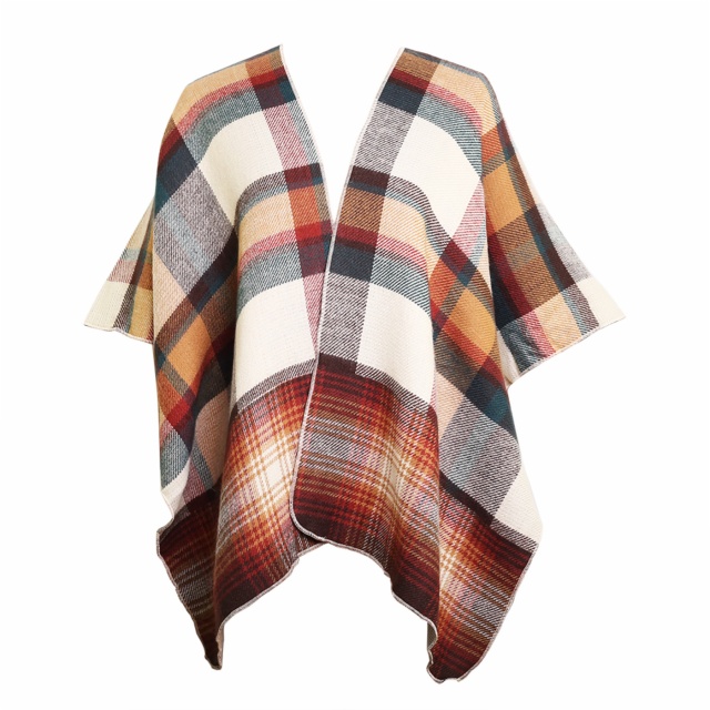 Description: 32N/2soft acrylic plaid reversible woven ruana