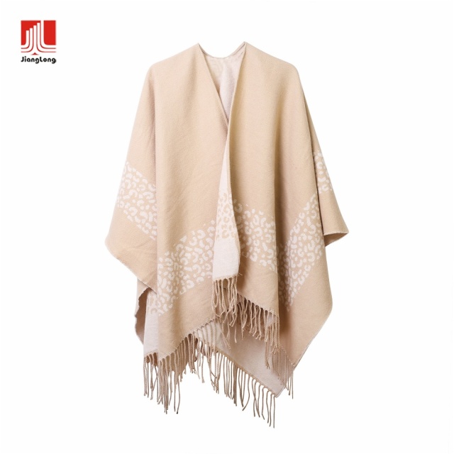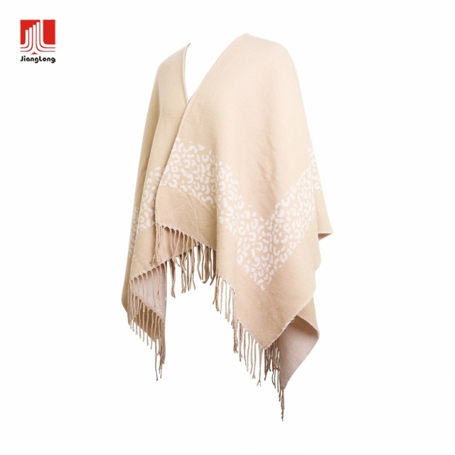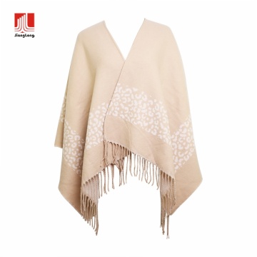 100%soft acrylic with leopard border brush woven ruana