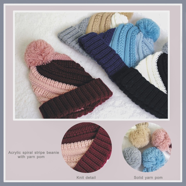 Item Code: Features:Spiral Stripe Beanie with yarn pom
