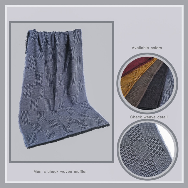 Description: Men's check square weave woven scarf