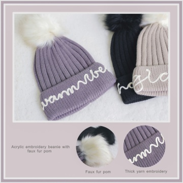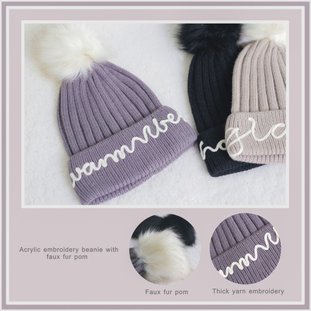 Item Code: Features:Knitted tape embroidery cuff beanie with faux fur